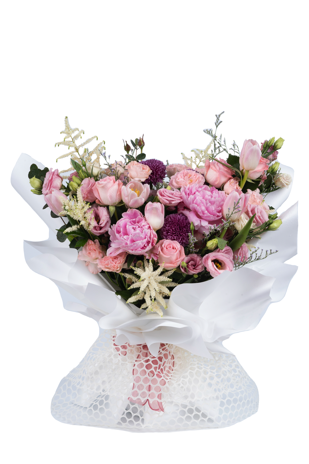 Our dedicated florists will decide on the bouquet arrangement, wrapping colour and material and main flower to ensure the perfectly crafted bouquet just for you.