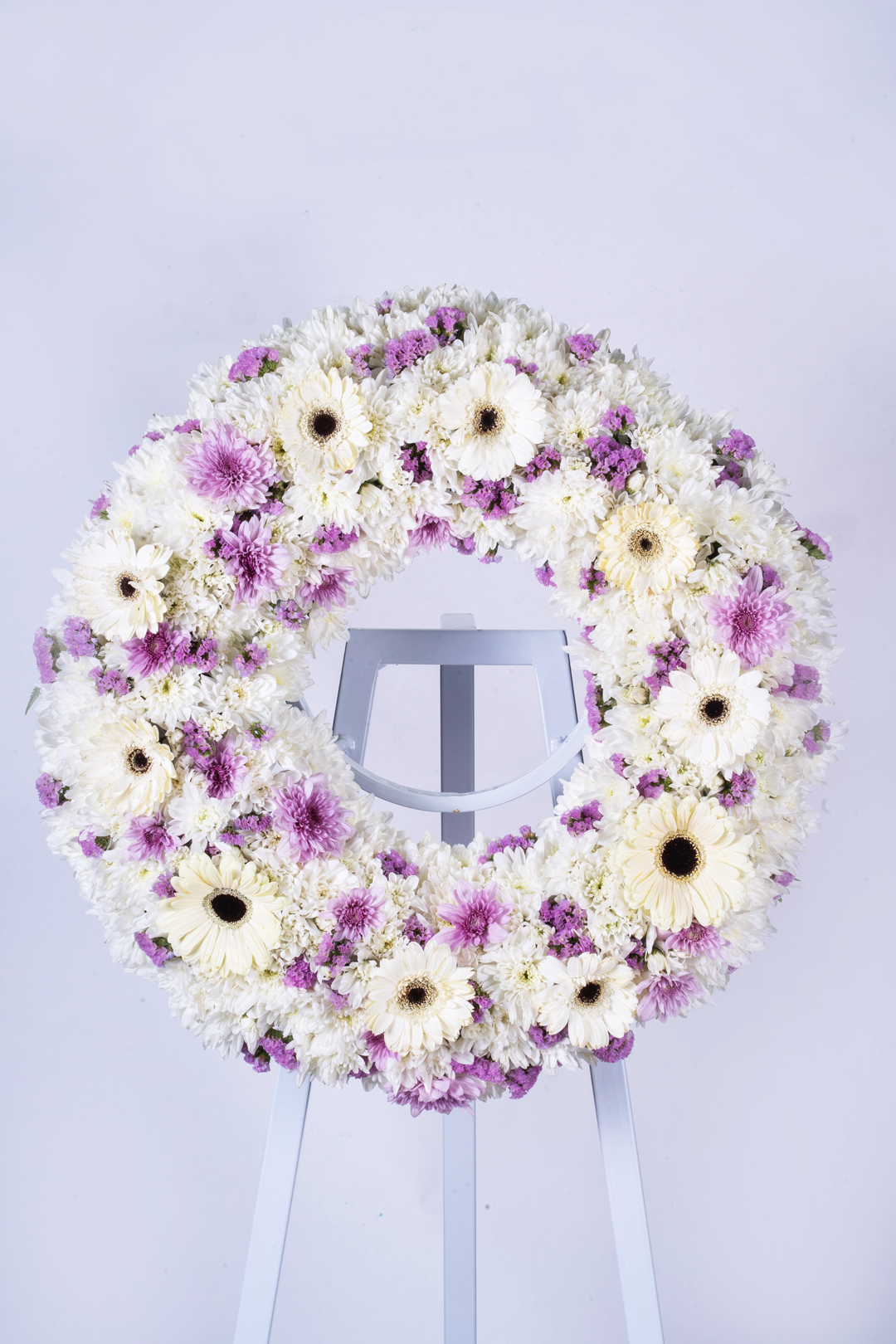 Convey a sense of purity, love and utmost respect with this floral wreath.