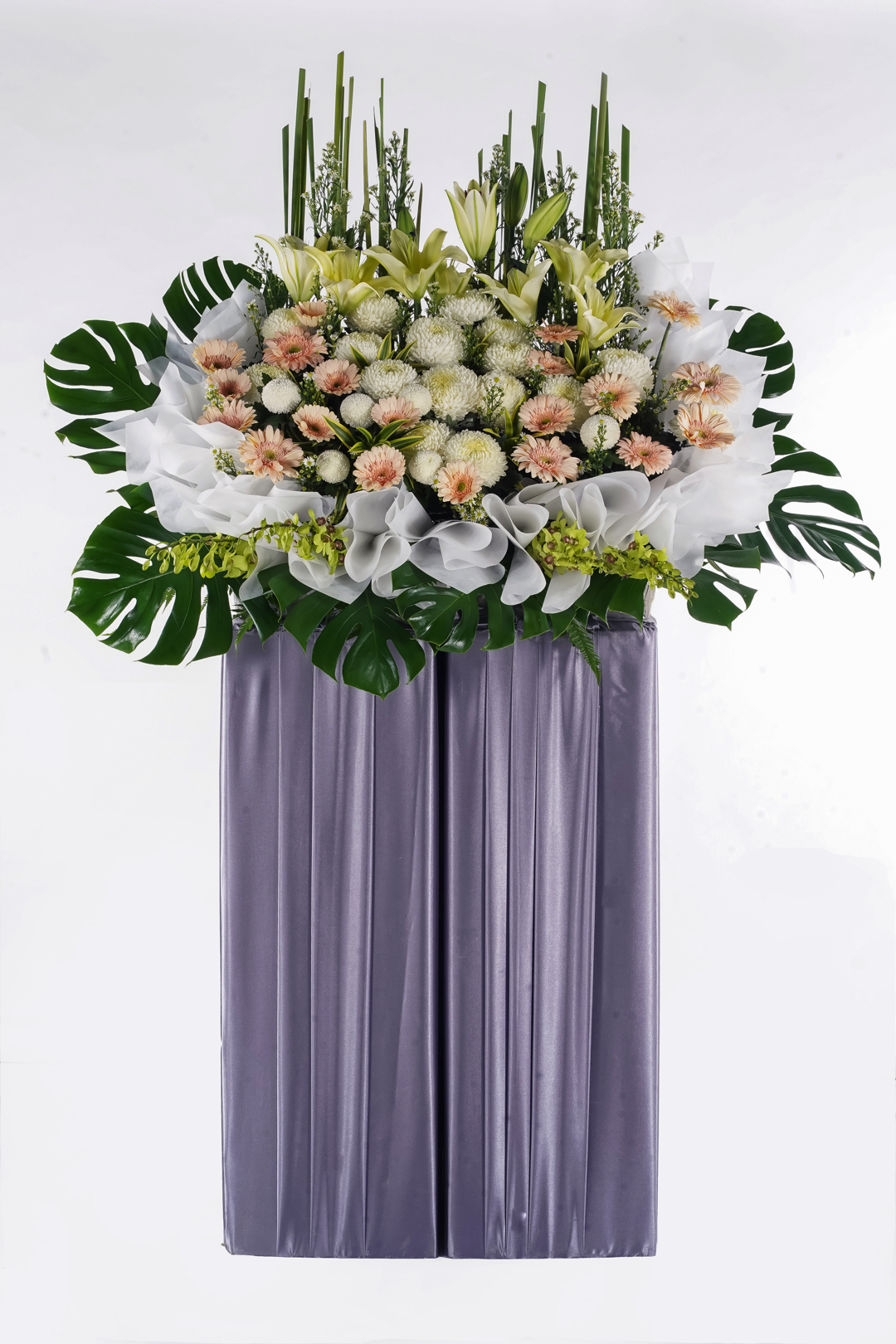 A grand condolence stand that encapsulate the love for the dearly departed.