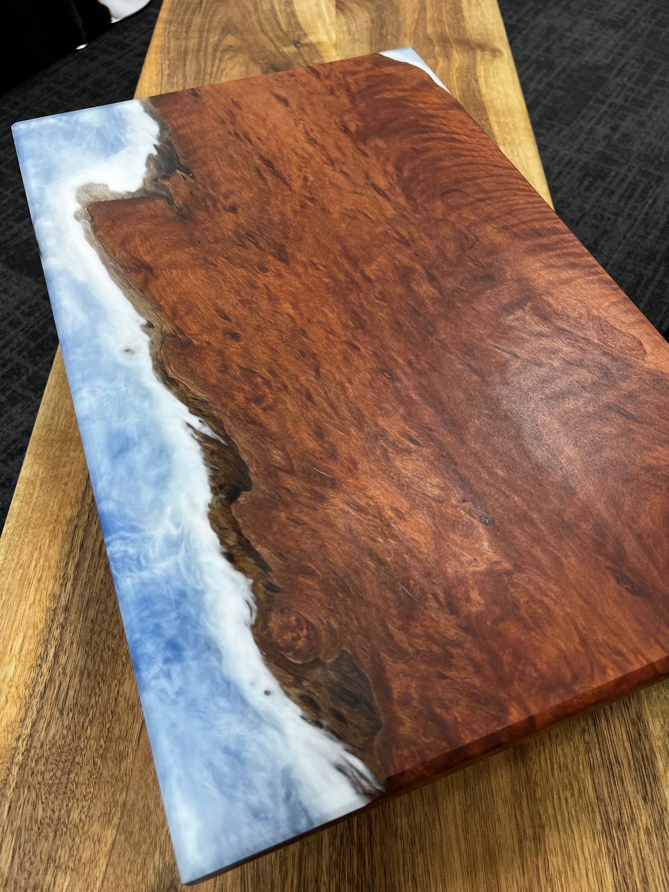 Introducing our handcrafted chopping board, made of high quality Lychee wood and epoxy resin, edible oil treatment, can be in contact with food.